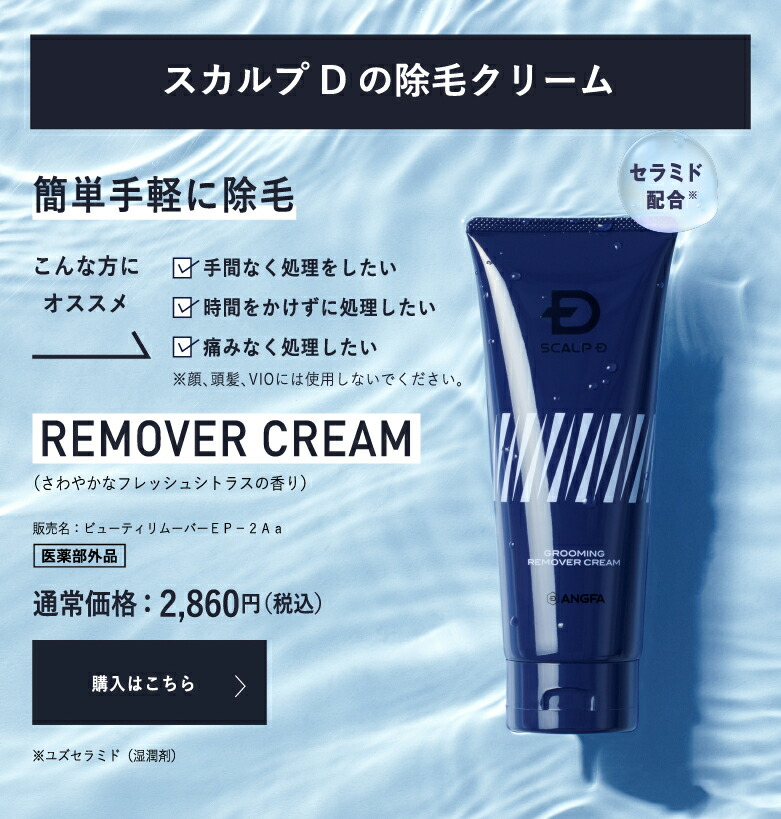スカルプD リムーバークリームは、医薬部外品の除毛力に加えて、ユズセラミドやヒアルロン酸などの保湿成分を配合し、アフターケアまで考えられているのが特徴です。